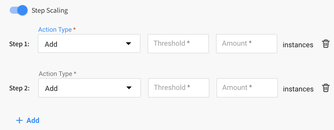 3. To enable step scaling, click the toggle switch, then fill in the parameters for each of the steps you want to define.