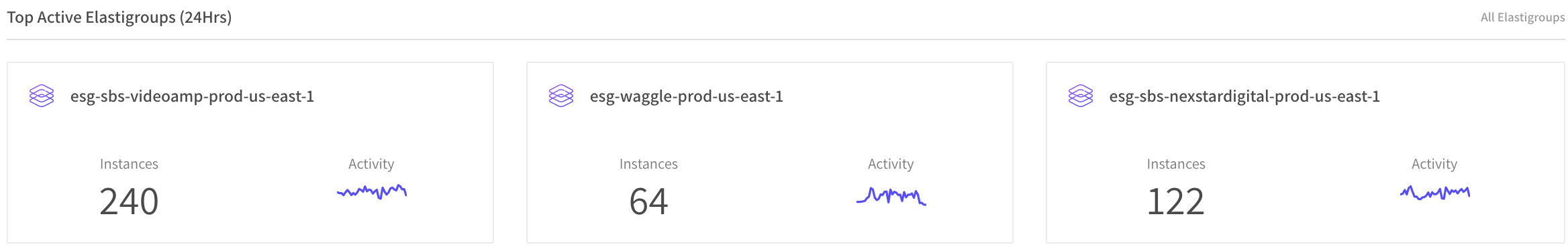 This area shows the three most active Elastigroups in the account over the last 24 hours. Activity is defined in terms of events that occurred such as scaling up or scaling down.