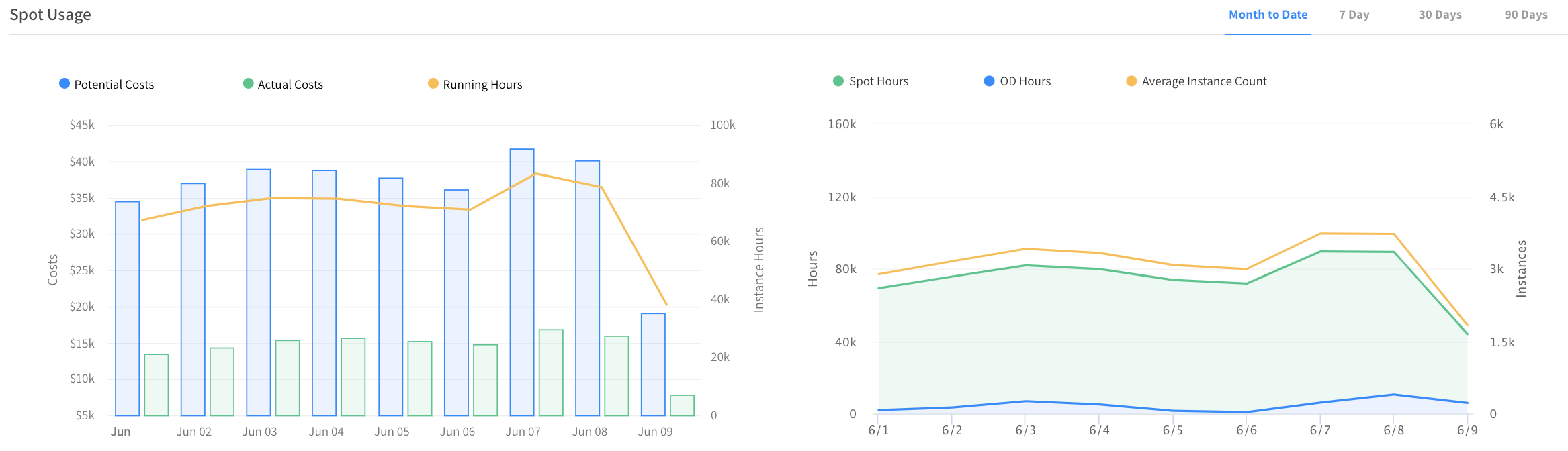 - Actual Spot Costs: A calculation of your actual costs taking into account the spot instance utilization.