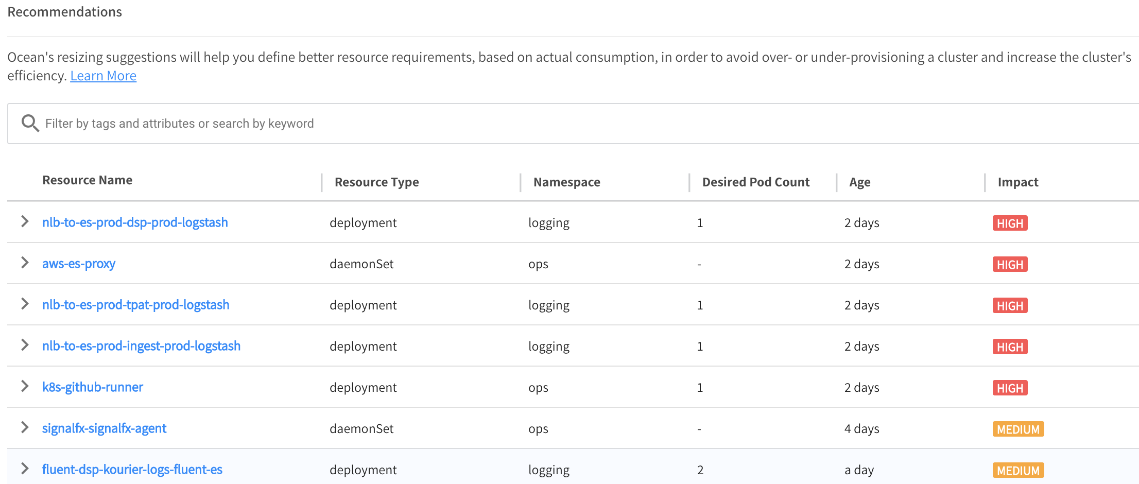However, estimating the proper amount of CPU and Memory when assigning resource requests to workloads is also a challenge which teams face when designing Kubernetes or ECS clusters. To address this challenge and create even more resource-efficient clusters, Ocean has implemented a Right Sizing recommendation mechanism.